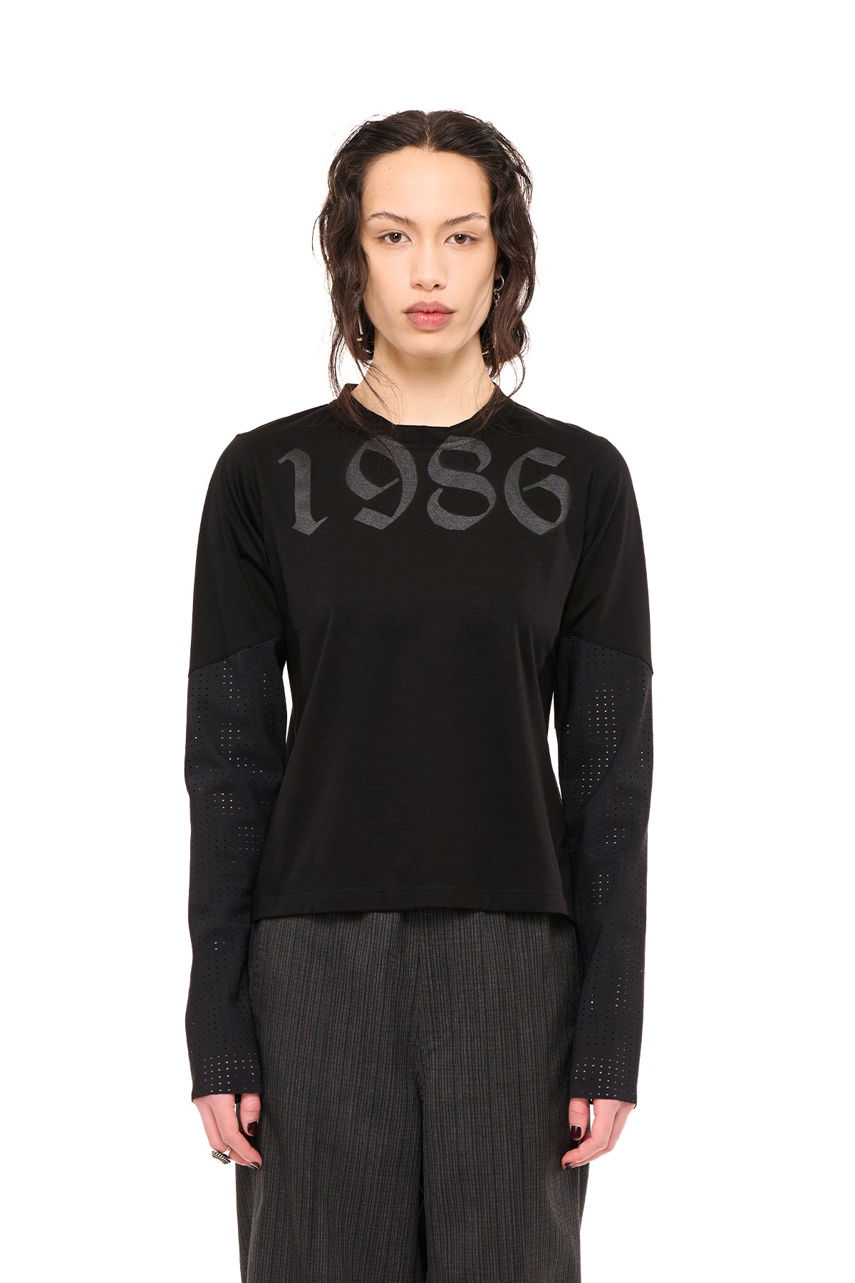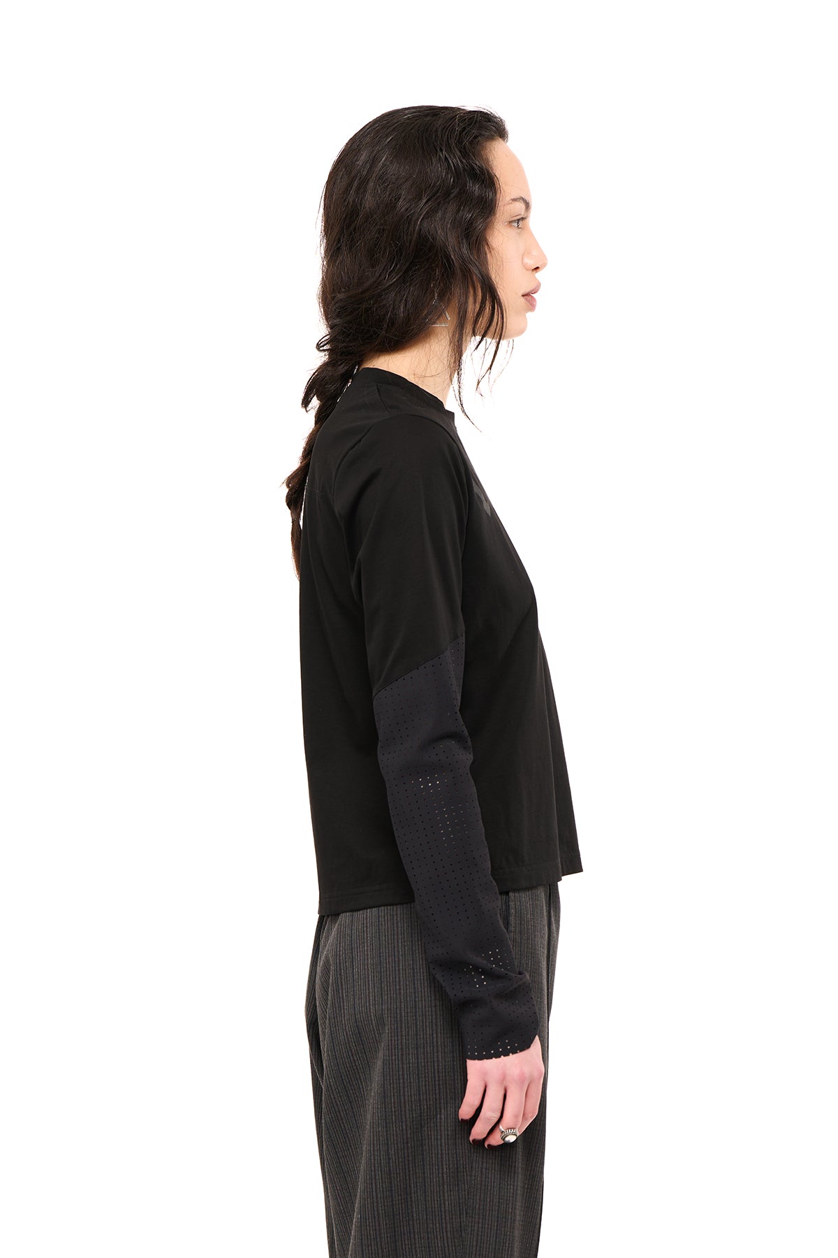 - Long sleeve with contrast pinhole detail