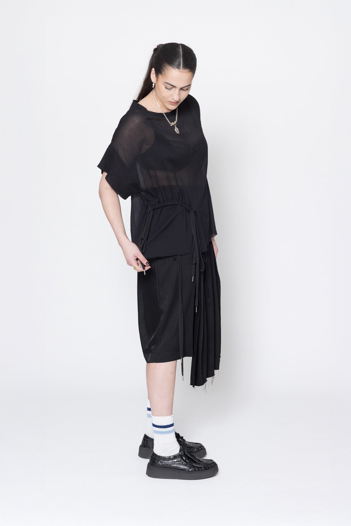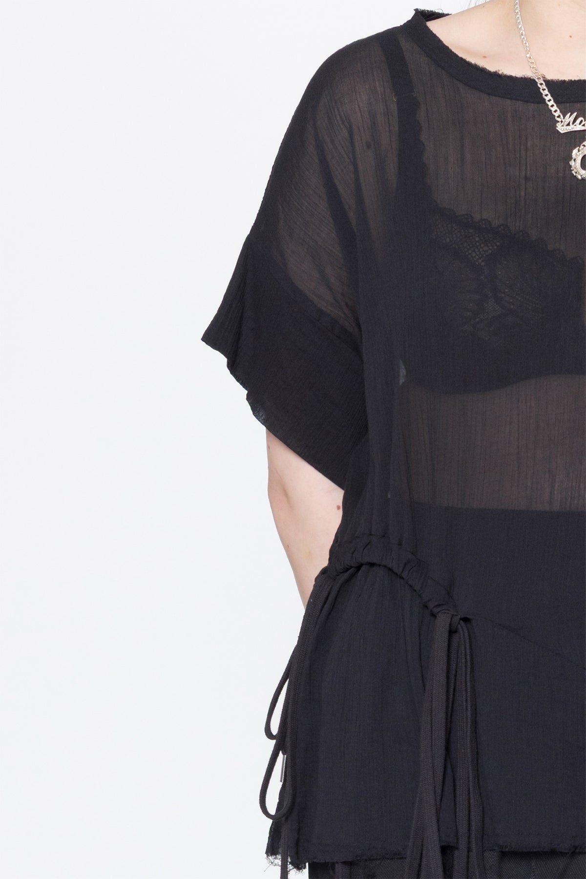 - Round neck with raw neck trim