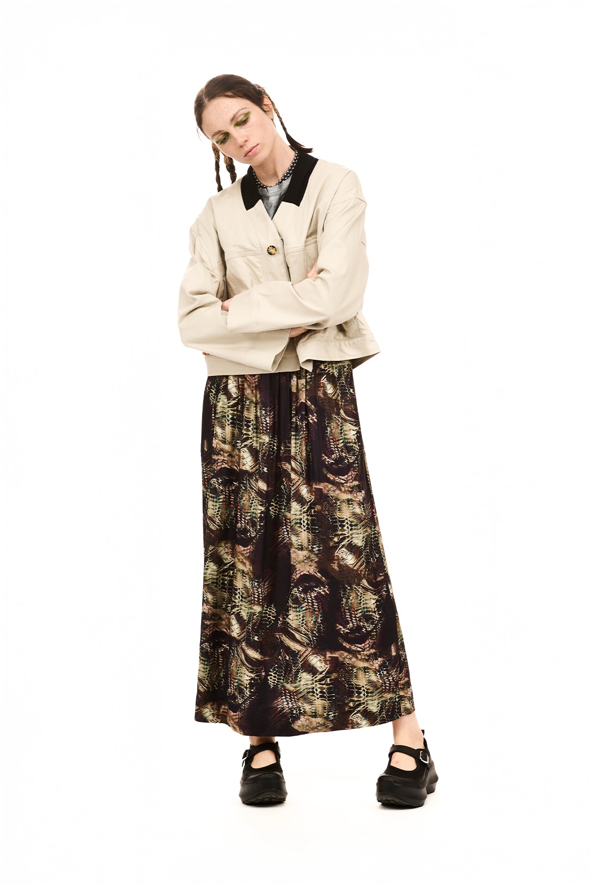 NOTE: This unique print has been produced for NOM*d and some irregularities may occur. We consider this to be a characteristic of the fabric. Due to the large scale of this print each garment may appear different from the one pictured.