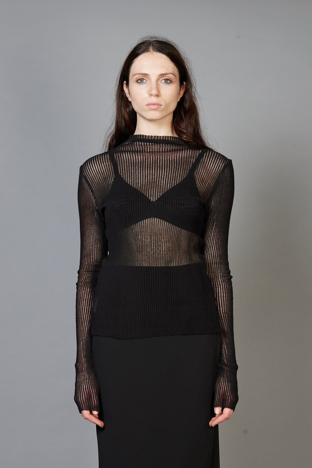 - Crafted from a sheer, expandable cotton rib