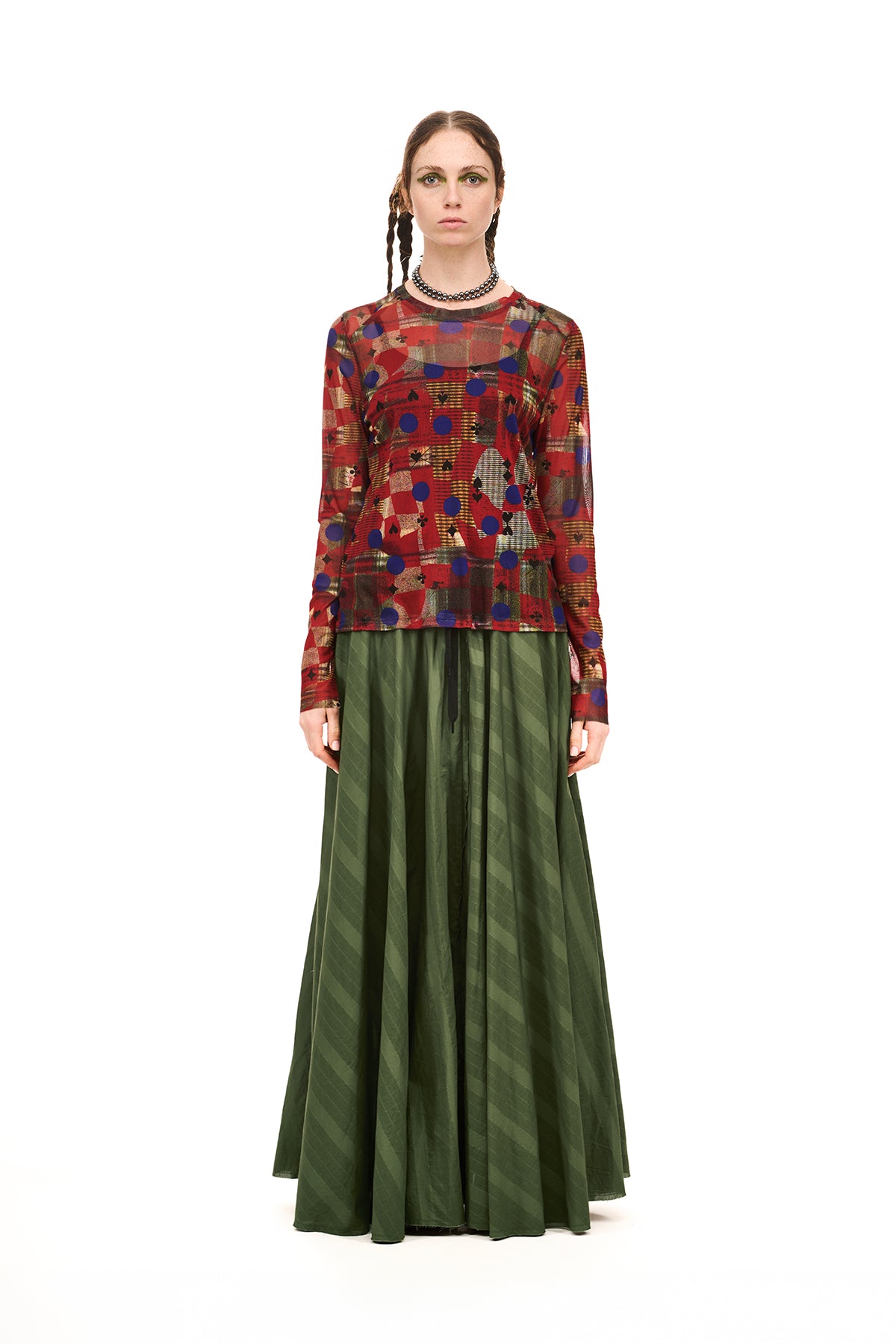 NOTE: This unique print has been produced for NOM*d and some irregularities may occur. We consider this to be a characteristic of the fabric. Due to the large scale of this print each garment may appear different from the one pictured.