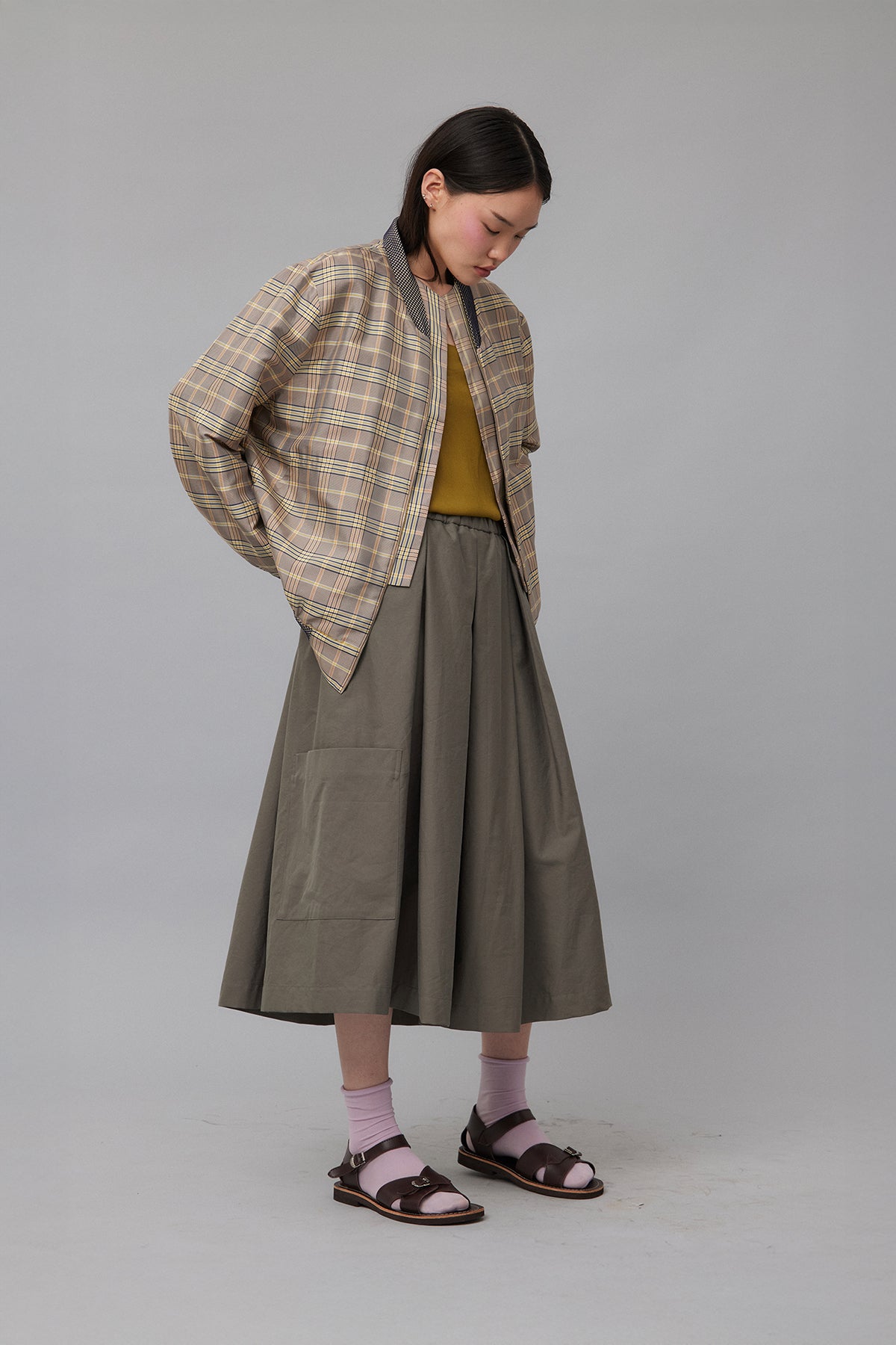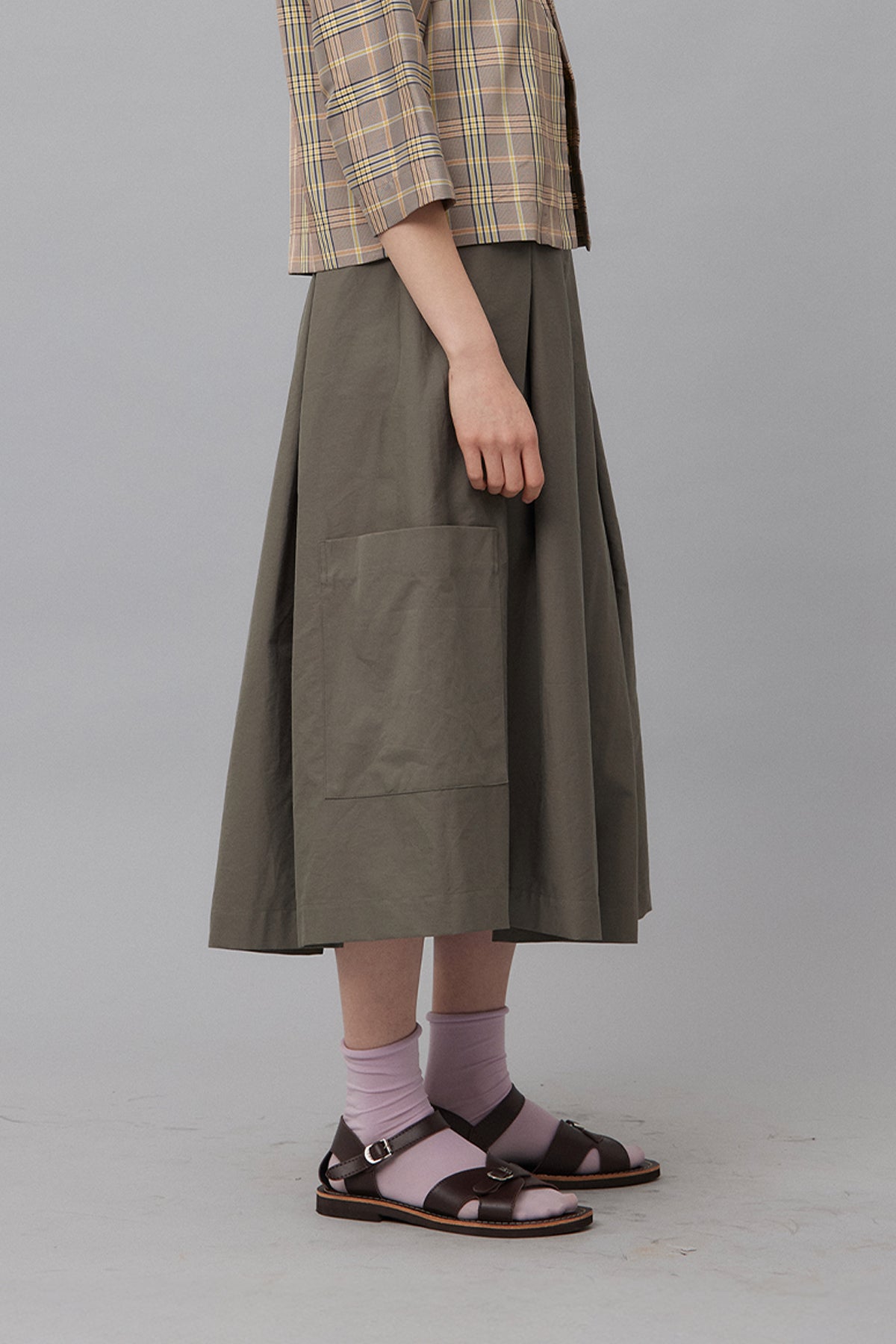 ● Pull on calf length skirt